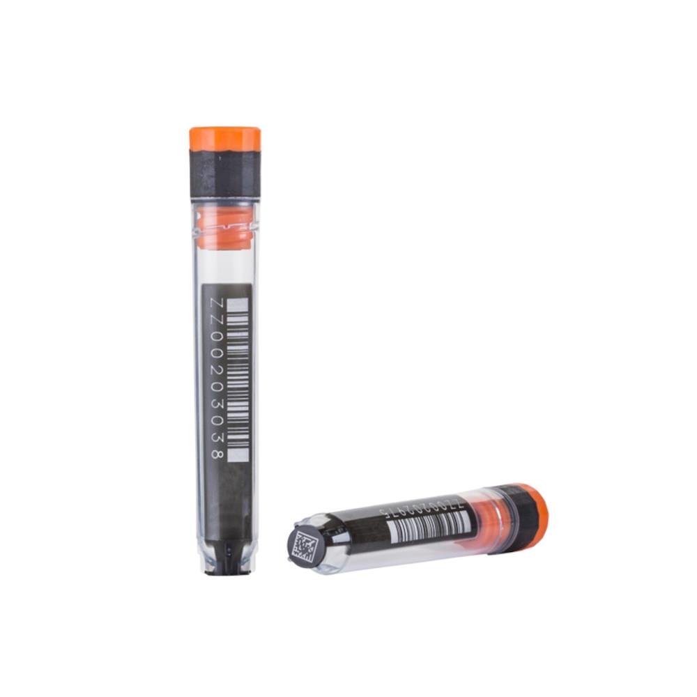 Each tube features a permanent 2D code laser etched in high contrast on the tube base, a permanent 1D linear barcode and human-readable number laser etched in high-contrast on the tube side. All three codes are identical and auditing processes guarantee all three codes match; standard 2D coding option is black on white.