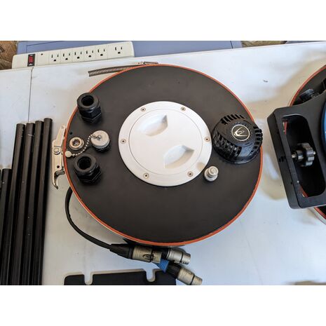 * The 9" (23 cm) diameter, optical-grade polycarbonate front port can easily be removed to facilitate filter, hood or lens changes.