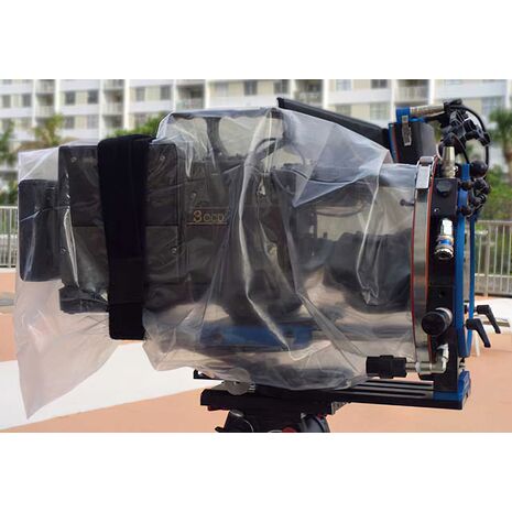 An all-aluminum, "all environment" splash housing designed to protect camera systems-from the "beta-cam" size video/HD systems up to the largest film cameras/lenses-when filming in the most extreme conditions.